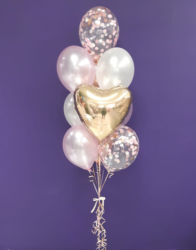 Фонтан из шаров "Перламутр" представляет собой изящное сочетание 10 шаров нежно-розовых оттенков с элементами розового золота. Этот изысканный декор станет прекрасным украшением любого женского праздника или юбилея. Шарики являются символом нежности и теплоты, идеальным подарком для любимой девушки или женщины.